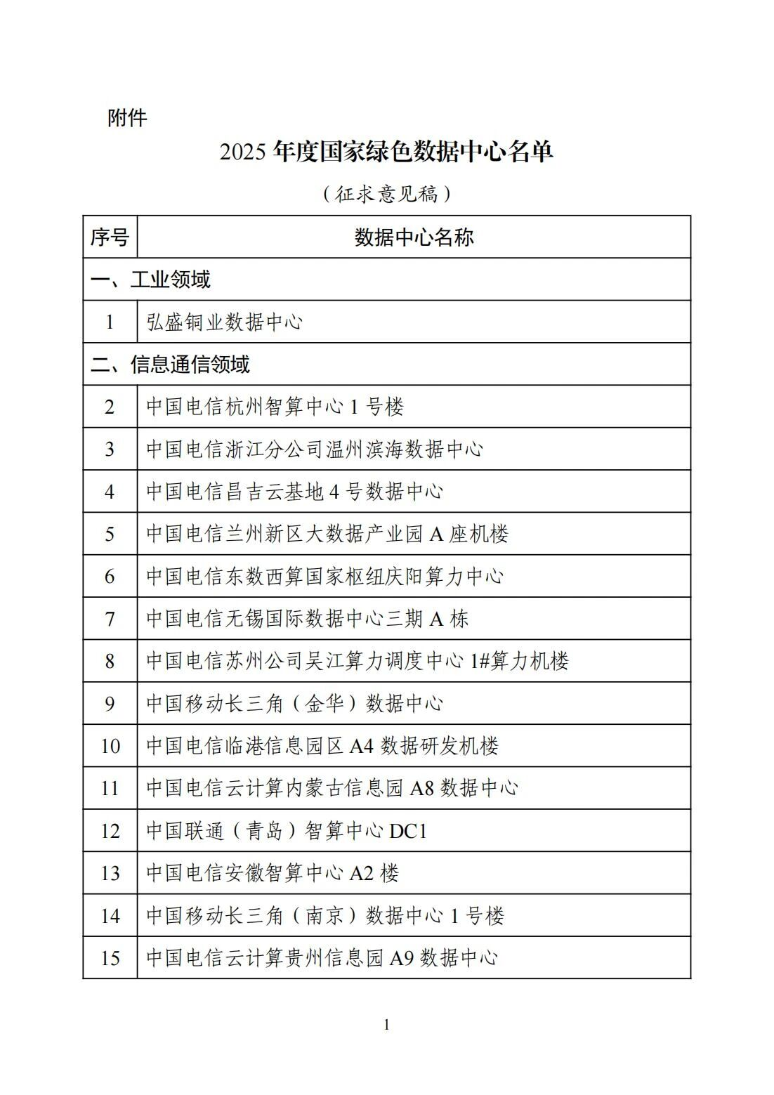 10月28日,工信部節(jié)能與綜合利用司公示2025年度國(guó)家綠色數(shù)據(jù)中心名單。根據(jù)《工業(yè)和信息化部辦公廳國(guó)家發(fā)展改革委辦公廳商務(wù)部辦公廳金融監(jiān)管總局辦公廳國(guó)管局辦公室國(guó)家能源局綜合司關(guān)于組織開(kāi)展2025年度國(guó)家綠色數(shù)據(jù)中心推薦工作的通知》(工信廳聯(lián)節(jié)函〔2025〕279號(hào)),現(xiàn)將2025年度國(guó)家綠色數(shù)據(jù)中心名單予以公示,公示時(shí)間為2025年10月28日至11月3日。